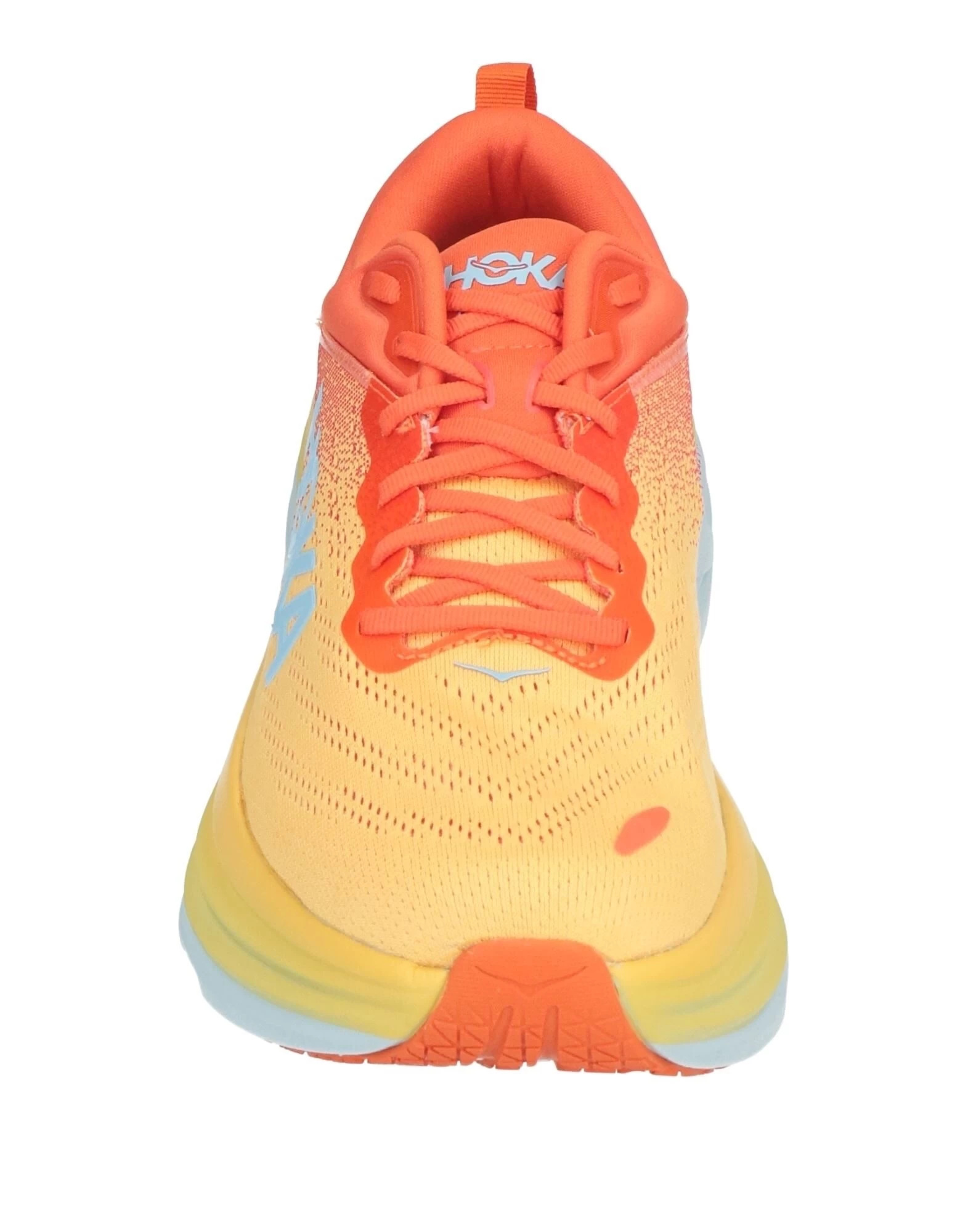 knitted, techno fabric, brand logo, multicolor pattern, laces, round toeline, flat, rubber cleated sole, chunky sneakers