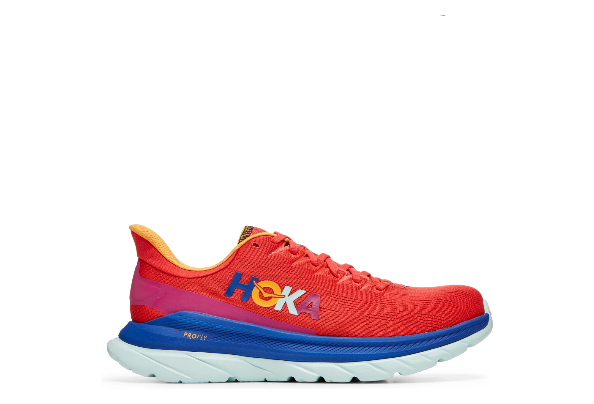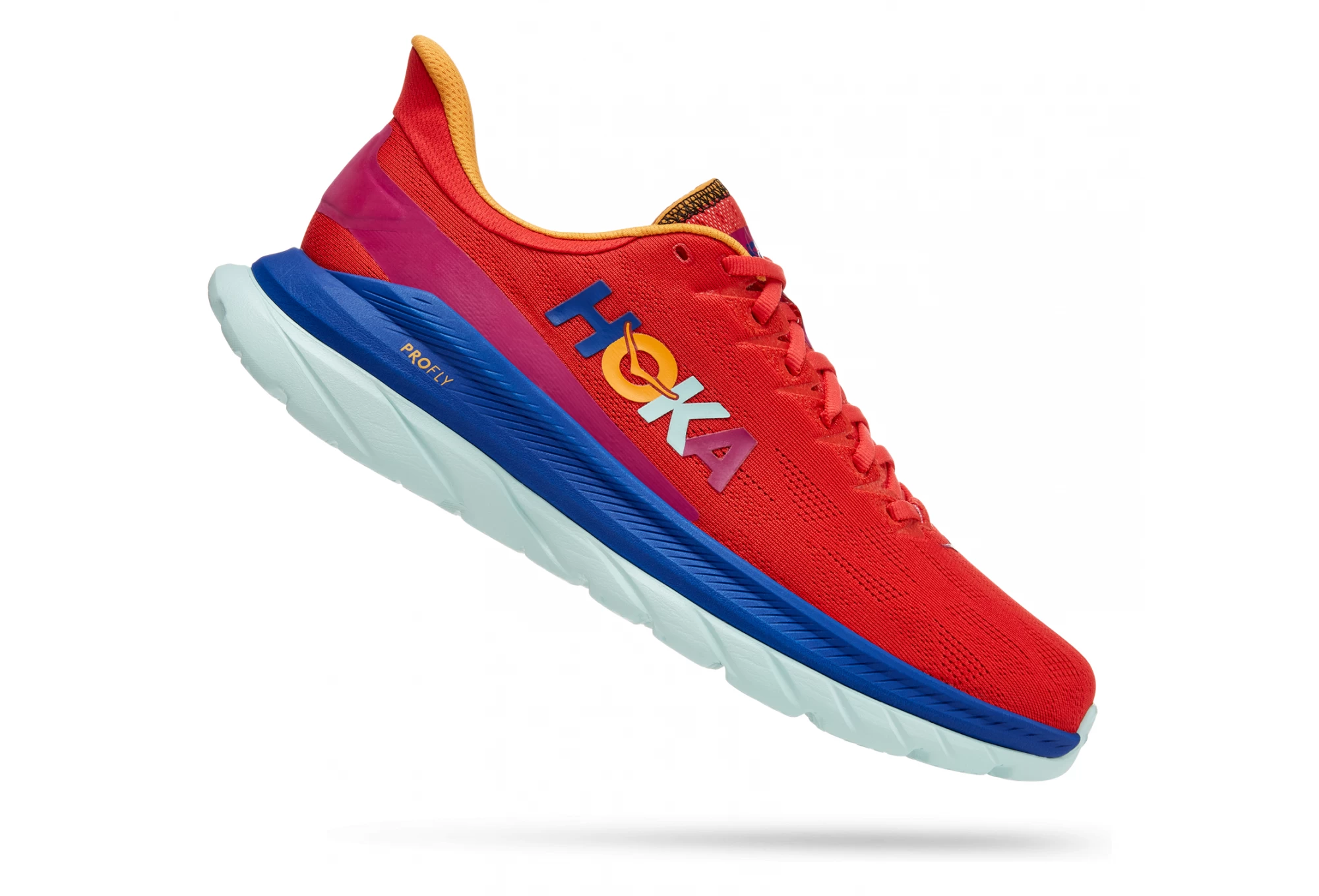In its fourth edition, the Mach 4 is innovative while taking inspiration from the Rocket X and the Carbon X. Designed to cover long distances, this everyday sneaker offers an energetic stride and a dynamic effect underfoot, an unmistakably HOKA sensation. Softer and more cushioned than the previous version, the Mach 4 consists of a harmonious mix of materials, combining a light and incredibly soft foam on the top and a rubberized foam directly below. This state-of-the-art shoe features a new tongue, a revised upper in heat-pressed embroidered TPU yarn, and a sophisticated collar that relieves pressure on the Achilles tendon. Lightweight, fast and unmistakably responsive, the Mach 4 gives you a dose of speed every day.